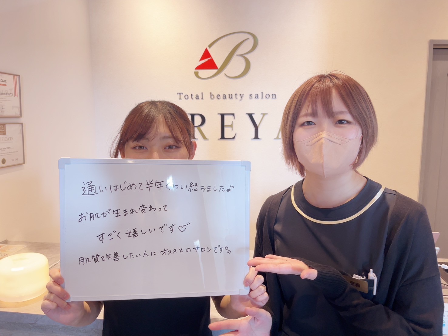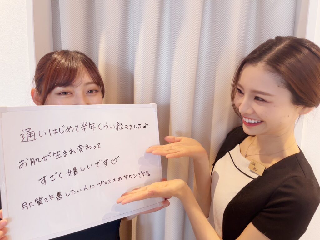 ここのフェイシャルエステと脱毛に通って、肌荒れがだいぶ落ち着いてお化粧するのも凄く楽しくなりました。