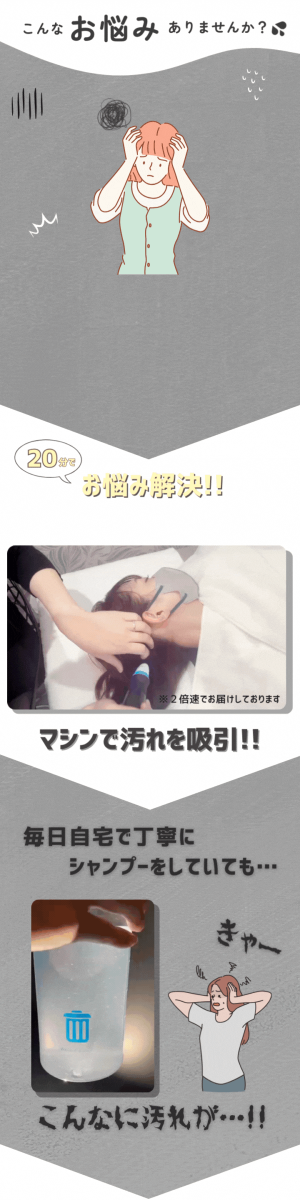 頭皮洗浄は、既に何回か施術してもらってます。シャンプーとは違うスッキリ感があって、ちゃんと頭皮を洗えてる感じが凄く気に入ってます。